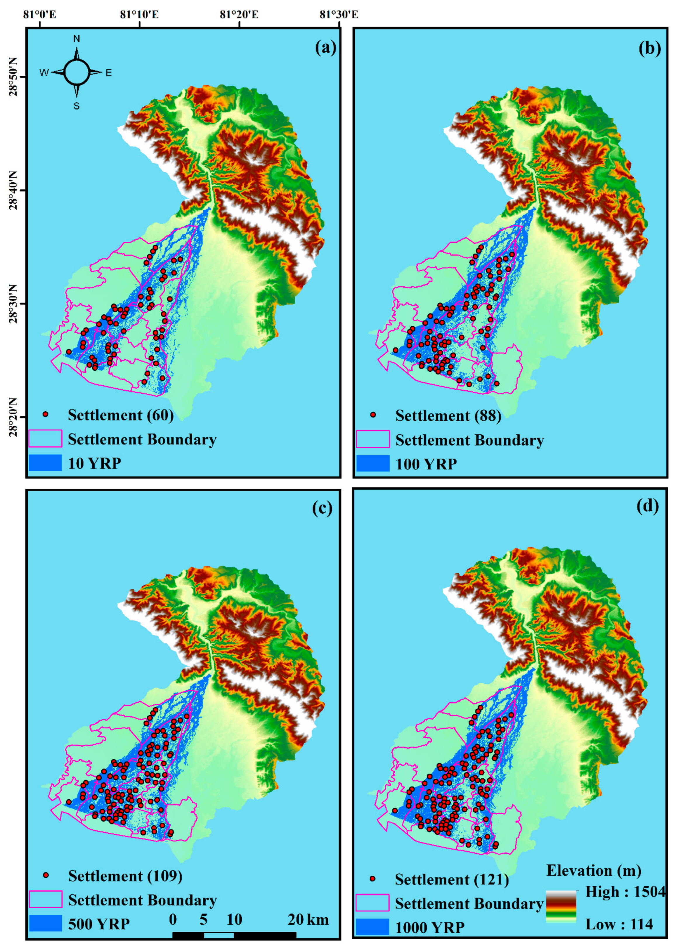 A Model-Based Flood Hazard Mapping on the Southern Slope of Himalaya