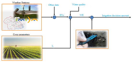 - Navarro-Hellín, H.; Martínez-del-Rincon, J.; Domingo-Miguel, R.; Soto-Valles, F.; Torres-Sánchez, R. A decision support system for managing irrigation in agriculture. Comput. Electron. Agric. 2016, 124. [Google Scholar] [CrossRef]