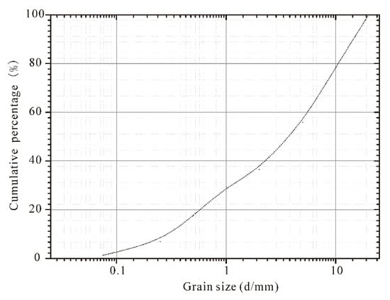 Grading curve of the debris flow deposits in Xiongmao Gully, for which the corresponding location is shown in Figure 2.