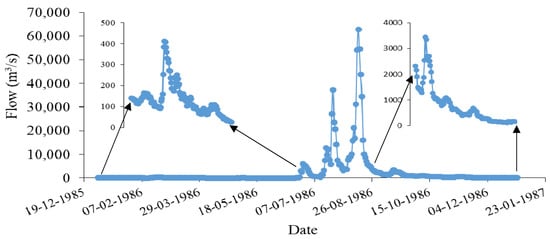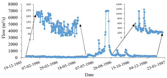 Flow hydrograph data considered for upstream boundary condition at Konta for the year 1986.