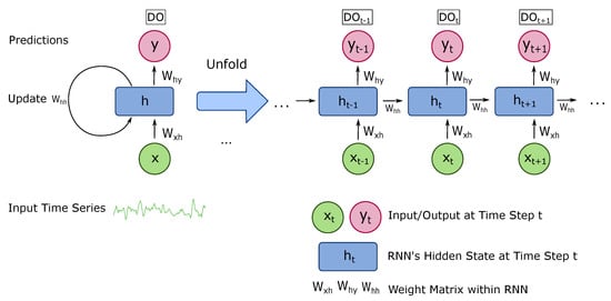 - The recurrent neural network is applied to process the time series water quality data. The recurrent structure offers a powerful way of capturing the temporal patterns across a period of time, which is critical in forecasting the changing of DO concentration in the future.