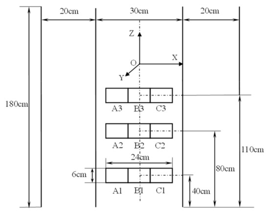 The OGT is sensitive to initial conditions [45], and data acquisition was usually conducted 20 or 30 min after onset of oscillation [7,37]. In this study, the PIV measurements begin after 1 hour’s oscillation. As illustrated in Figure 2, the measurements were conducted in the X–Z plane with the position in Y coordinate being the middle of the grids. Nine locations aligned with orifices of the grids were measured with fixed oscillating stroke and frequency being 0.5 cm and 3 Hz, respectively. However, a fixed zone was measured using different stroke and frequency combinations to investigate their influences on the turbulent intensity levels.
