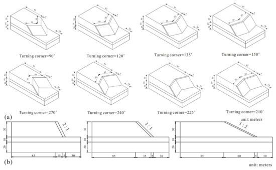 Calculating models with different corner angles and slope gradients: (a) different corner angles and (b) different slope gradients.