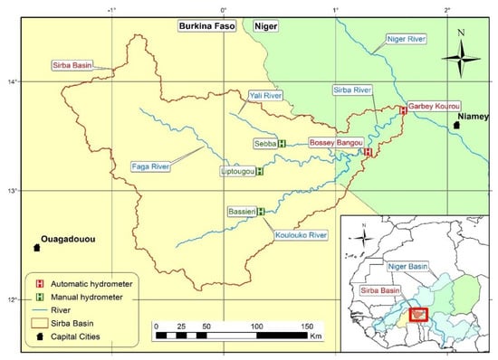 The Sirba River starts in Niger, downstream the confluence of Yali, Faga, and Koulouko rivers. The flow is measured by two automatic hydrometers in Niger (Bossey Bangou and Garbey Kourou) and by some manual hydrometers in Burkina Faso, among which the main ones are Sebba, Liptougou, and Bassieri (Figure 1).