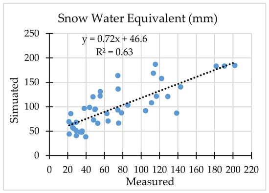The HBV-ETH model showed a robust performance in the calibration and validation years. Model efficiency was higher in the catchments with higher glacierization probably because melt is driven by temperature, which is spatially more homogenous than precipitation and therefore can be simulated more accurately by a simple degree-day approach. A strong elevation-dependent change in environmental conditions characterizes larger catchments, extending into the foothills (e.g., the Turgen and Kaskelen) and distributed models (e.g., [65]) may be more suitable than a lumped model. However, in all catchments simulated mean, high (Q10) and low (Q90) flows were close to the observed values (Table 4). Model parameters (Table 5) were within realistic ranges previously defined for the glacierized alpine catchments [17] and in agreement with observational data from the Kishi Almaty catchment. The SWE measurements were used as additional criteria to reduce parameter uncertainty. A good agreement was achieved between the observed and modelled data in the Kishi Almaty catchment, where measurements were made (R2 of 0.63 for monthly mean in calibration and validation years and 0.82 for 5-day means in calibration years), but only a moderate agreement (R2 of 0.3–0.4 for monthly means in calibration and validation years) in the Turgen and Kaskelen catchments. In the Ile Alatau, SWE is known to vary strongly with elevation, aspect and prevailing vegetation and the achieved moderate correlation with the modelled data can be due to the observed spatial variability in SWE [66].