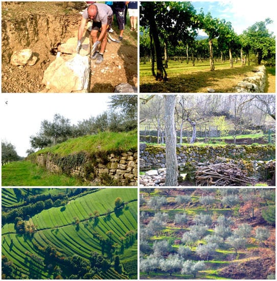 - Tarolli, P.; Preti, F.; Romano, N. Terraced landscapes: From an old best practice to a potential hazard for soil degradation due to land abandonment. Anthropocene 2014, 6, 10–25. [Google Scholar] [CrossRef]