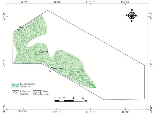 - Interface modification and reconstruction. According to the intersection of the interfaces, we modified the boundary contours of the original interfaces and deleted the extra parts. The modified boundary contours were used as a constraint, and all interfaces were reconstructed and interpolated.