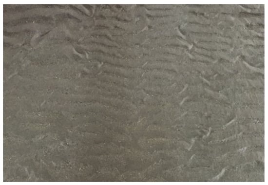 It should be noted that Equation (3) expresses the average shear stress in the cross-section, which neglects the impact of the current on both the rough sandy bottom and the smooth glass walls of the flume. Therefore, the average shear stress on the sandy bottom of the flume can be calculated by another method [35,36] as: