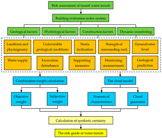 The risk assessment process of tunnel water inrush based on a normal cloud model.