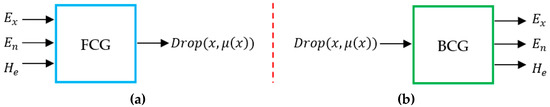 Cloud generator is a tool to implement the conversion between the qualitative index and the quantitative index. The cloud generator is divided into forward cloud generator (FCG) and backward cloud generator (BCG), as shown in Figure 6. The FCG maps from qualitative to quantitative, it can generate a large number of cloud drops to form a cloud diagram by inputting the cloud numerical characteristics . In contrast, the BCG can convert quantitative values into the qualitative a concept [38,39].