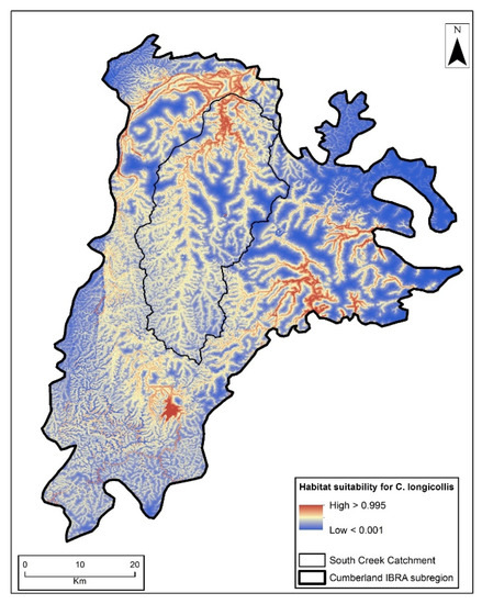 The predicted highest suitable habitat areas for C. longicollis in the Cumberland region included higher order stream channels of lower South Creek Catchment (Figure 11).
