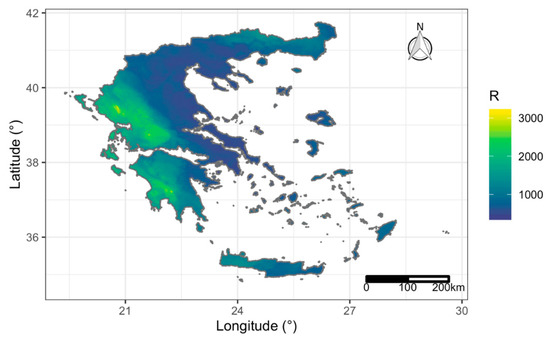 Annual rainfall erosivity. Values are in MJ·mm/ha/h/y. Available online in Supplementary Materials.