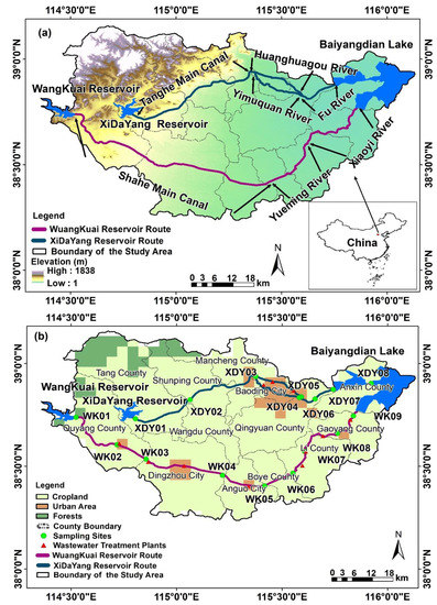 - Han, Q.; Tong, R.Z.; Sun, W.C.; Zhao, Y.; Yu, J.S.; Wang, G.Q.; Shrestha, S.; Jin, Y.L. Anthropogenic influences on the water quality of the Baiyangdian Lake in North China over the last decade. Sci. Total Environ. 2020, 701, 134929. [Google Scholar] [CrossRef] [PubMed]