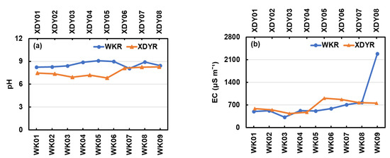 3.1. Spatial Variations of Water Quality Parameters Measured on Site