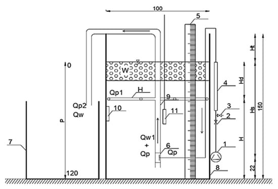 The technological test on the physical model was carried out on a laboratory installation in the university water laboratory. The schematic diagram is presented in Figure 1.