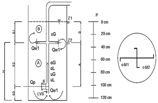 The scheme of hydraulic and technological tests (aeration) is presented in Figure 3 and Figure S1 (Supplementary Materials).