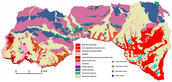- Wołkowicz, S. Radon potential of Sudetes and selected units of Fore-Sudetic Block. In Radon Potential of the Sudetes with Determination of Potentially Medicinal Radon Water Areas; Wołkowicz, S., Ed.; Państwowy Instytut Geologiczny: Warszawa, Poland, 2007; pp. 5–106, (In Polish with English summary). [Google Scholar]