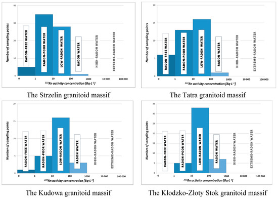 PRZYLIBSKI, T.A.; DOMIN, E.; GORECKA, J.; KOWALSKA, A. 222Rn Concentration in Groundwaters Circulating in Granitoid Massifs of Poland. Water 2020, 12, 748. https://doi.org/10.3390/w12030748