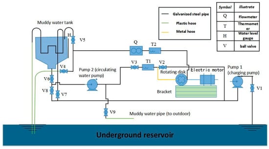 A circulatory, automated erosion test system, based on a motor-driven disc within muddy flow, was developed as shown in Figure 1. The equipment was mainly composed of muddy water, a water tank, cooling water system, rotating disc chamber, water pump, and measuring instruments.