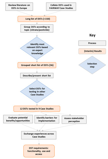 A summary of the different stages of the review, selection and testing of the DSTs in the FAIRWAY case studies is given in Figure 2, and described in more detail below.