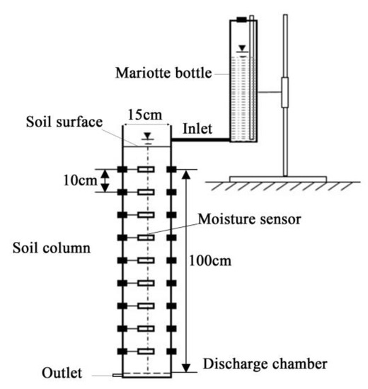 - Miller, D.E.; Gardner, W.H. Water infiltration into stratified soil 1. Soil Sci. Soc. Am. J. 1962, 26, 115–119. [Google Scholar] [CrossRef]