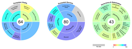 In tackling the problem of water resource management, we present an application of the Freshwater Health Index (FHI) to Southeast Asia’s transboundary Sekong, Sesan and Srepok (3S) River basin. The FHI is a socio- and eco-centric indicator framework that views the sustainable management of freshwater ecosystems and the services they support as central to water resources management []. It is a nested, quantitative indicator system that assesses three interrelated components of freshwater health: Ecosystem Vitality, the health of freshwater ecosystems; Ecosystem Services, water-associated provisioning, regulating and cultural services; and Stakeholders and Governance, the people who have an interest in, or influence over, freshwater ecosystems and the rules, regulations and institutions that regulate the way in which stakeholders engage with freshwater ecosystems. The FHI aggregates data and knowledge from the social and natural sciences under a social-ecological framework to holistically characterize the health of a freshwater system on a scale of 0–100. We are developing the FHI to assist stakeholders in understanding freshwater ecosystem dynamics, how they are manipulated to affect water-related services, and how the governance regime manages these dynamics. The FHI also organizes relevant data, provides quantitative information about social dynamics, and creates a platform for exploring future scenarios.