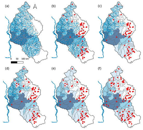 Thus, F1 equalled the number of sub-basins that were disconnected from migratory fish due to downstream dams. F3 was calculated by Equations (23) and (24):