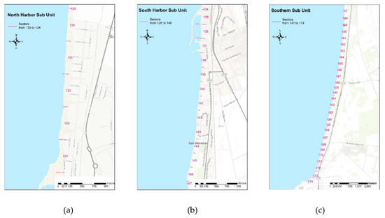 San Vincenzo’s subunit partition; (a) North Harbor Sub Unit; (b) South Harbor Sub Unit; (c) Southern Sub Unit.