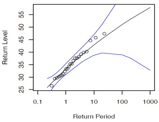 The selection of the best GEV model adjustment was made by using the deviance test, which is based on the log-likelihood [].