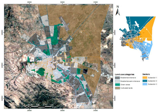 Three catchments were delineated in the metropolitan area of San Luis Potosí for analyzing SUDs alternatives. Figure 2 depicts the identified catchments and Table 3 presents the land use areas within each catchment.