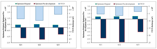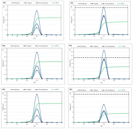 From Figure 7, it can also be observed that the proposed optimal solutions help mimic the original situation with regards to the discharged volume so the traditional requirements for SUD design (see, for example, [18]) would be met.