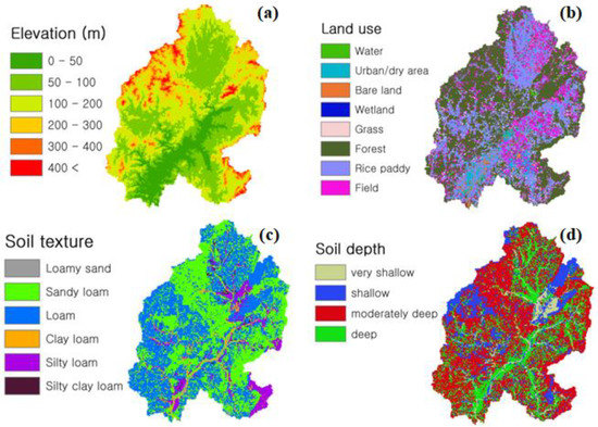 - Choi, Y.S.; Kim, K.T.; Lee, J.H. Development of grid based distributed rainfall-runoff model with finite volume method. J. Korea Water Resour. Assoc. 2008, 41, 895–905. [Google Scholar] [CrossRef][Green Version]