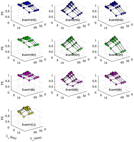 | Storm Event | Upper Limit of Lr (km) for Required Accuracy with Tr = 10 and Tr = 30 (min) | |||||||