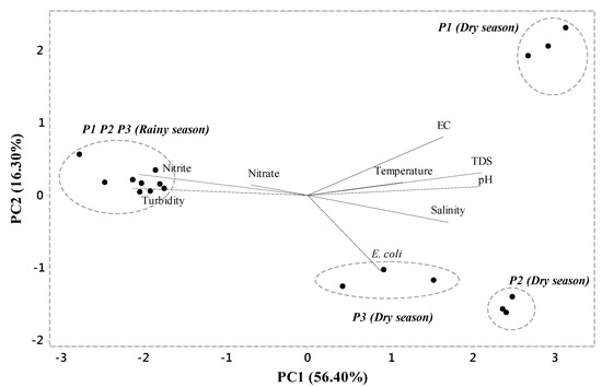 - Chounlamany, V.; Tanchuling, M.A.; Inoue, T. Spatial and temporal variations of water of a segment Marikina River using multivariate statistical methods. Water Sci. Technol. 2017, 76, 1510–1522. [Google Scholar] [CrossRef]