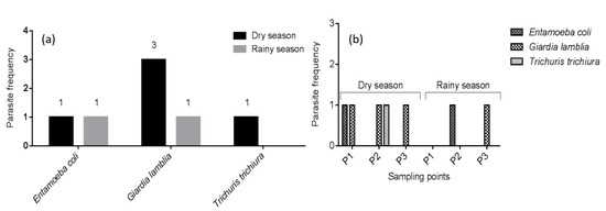 - Vieira, E.K.; Gomes, E.A. Influência das Estações seca e Cheia na Ocorrência das Parasitoses Intestinais no Município de Tefé, Amazonas, Brasil. Bachelor’s Thesis, Universidade do Estado do Amazonas, Amazonas, Brazil, 2017. [Google Scholar]