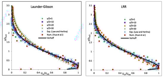 - Zhang, S.; Law, A.W.-K.; Zhao, B. Large eddy simulations of turbulent circular wall jets. Int. J. Heat Mass Transf. 2015, 80, 72–84. [Google Scholar] [CrossRef]