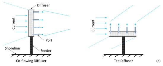 - Geun, K.D.; Won, S.I. Modeling the mixing of heated water discharged from a submerged multiport diffuser. J. Hydraul. Res. 2000, 38, 259–270. [Google Scholar] [CrossRef]