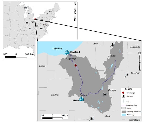 The Cuyahoga watershed and study area. (Map data from Ohio Department of Natural Resources, United States Census Bureau, United States Geological Survey, National Oceanic and Atmospheric Administration.)