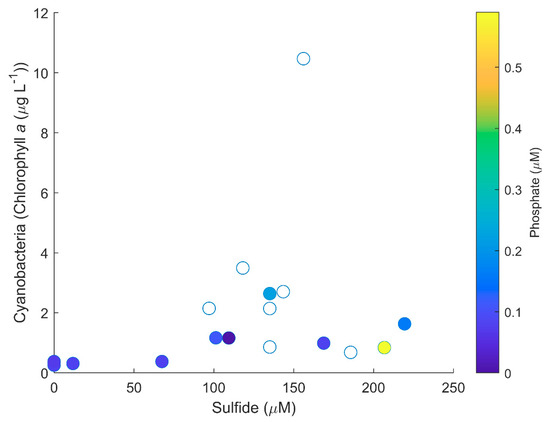 - The fact that cyanobacteria (Oscillatoria sp.) reaches the highest concentration at high sulfide concentrations suggests the presence of a high sulfide-adapted Oscillatoria sp. population.