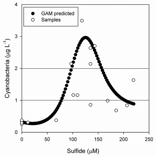 | Cyanobacteria ~ s(Sulfide, k = 6) + s(Phosphate, k = 6) |