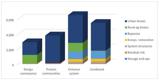 Table 1). The Without Project baseline describes a continuation of existing conditions and projects currently authorized, e.g., current construction efforts to raise Folsom Dam. The Design Capacity (SPFC) strategy splits its budget between improvements to existing urban and rural SPFC levees so that they can convey their design flow (