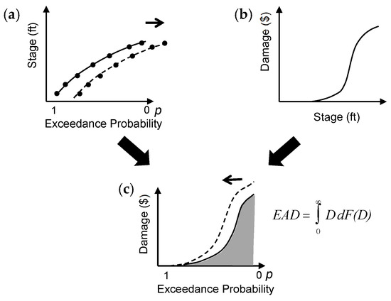 33]. The HEC-FDA model uses stage-exceedance probability curves and damage-stage curves to estimate EAD (