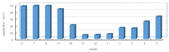Long series runoff collected during the historical period from 1961 to 2009 (hydrological year) of the Xiaolangdi Reservoir was used as input data, and the data was input according to the reservoir optimization model. The monthly average natural runoff of the Xiaolangdi Long-series is shown in Figure 2.