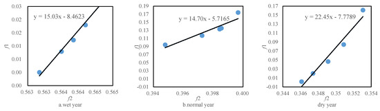 Figure 13. Correlation between power generation and ecological elasticity in each typical year.