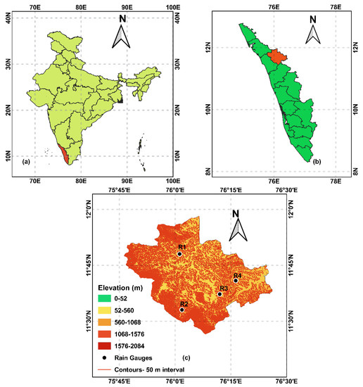Location and digital elevation model of Wayanad District (a) India (b) Kerala (c) Wayanad (Modified after [43]).
