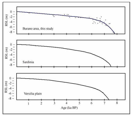 - Marra, F.; Bozzano, F.; Cinti, F.R. Chronostratigraphic and lithologic feature soft the Tiber River sediments (Rome, Italy): Implications on the post-glacial sea-level rise and Holocene climate. Glob. Planet. Chang. 2013, 107, 157–176. [Google Scholar] [CrossRef]