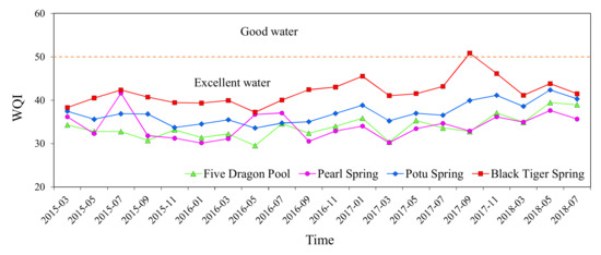 WQI of spring water from March 2015–July 2018.