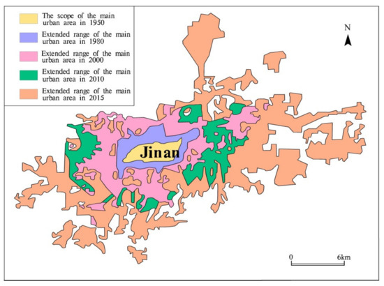 Changes in main urban areas in Jinan City.