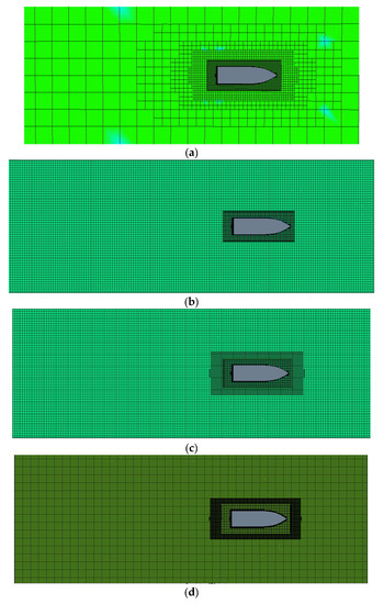 - Sun, H.; Ma, W.; Zhu, J. Research on grid factor in numerical calculation of planing craft resistance. Ship Build. China 2015, 56, 170–178. [Google Scholar]