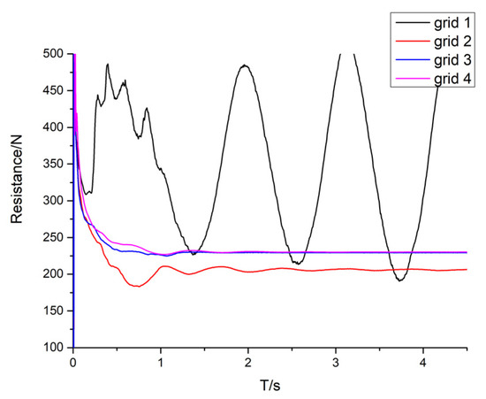 The numerical results of the four grids are presented in Table 5, the resistance curves are presented in Figure 9.